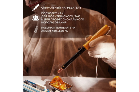 Паяльник с деревянной ручкой, серия ЭПСН, 100Вт, 230В, пакет REXANT