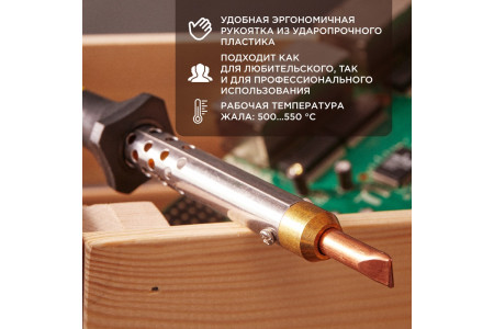 Паяльник с деревянной ручкой, серия WOOD, 65Вт, 230В, блистер PROconnect