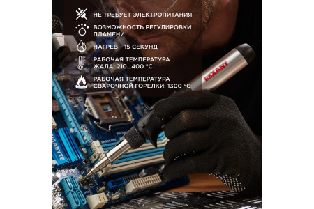 ОписаниеПаяльник газовый с резервуаром 17мл REXANT предназначен для экстренного ремонта электроники, плавки и сварки пластиковых частей, нагрева малых металлических элементов, плавки металла с низкой температурой плавления, ремонта ювелирных изделий, сгибания тонких стеклянных трубок, прогрева механизмов в холодное время года и т.д. Газовый паяльни..