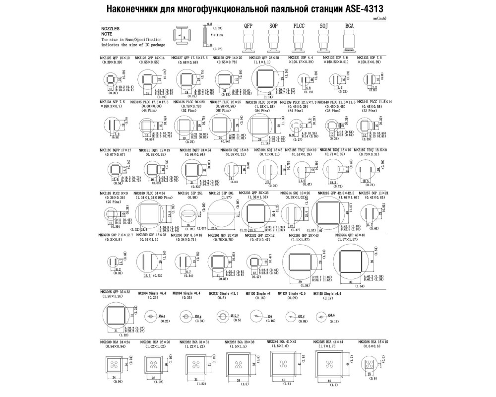 Сопло для термофена паяльных станций ASE-4313, ASE-4506, ASE-4212. Форма сопла - квадратная, для пайки микросхем типа QFP. Размеры сопла: 32 х 32 мм (1,26" х 1,26"). Материал: бескислородная медь с никель-хромовым покрытием. Рабочая температура ..