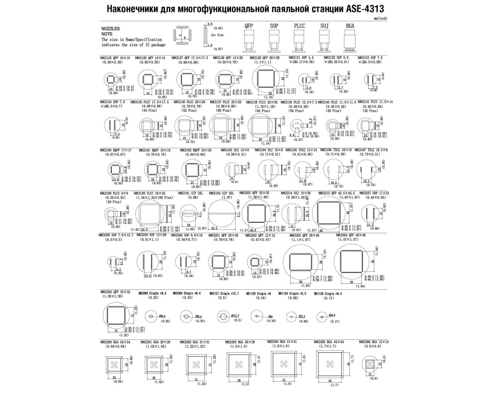 Сопло для термофена паяльных станций ASE-4313, ASE-4506, ASE-4212. Форма сопла - квадратная, для пайки микросхем типа PLCC (28 ножки). Размеры сопла: 10 х 10 мм (0,39" х 0,39"). Материал: беcкислородная медь с никель-хромовым покрытием. Рабочая температура ..