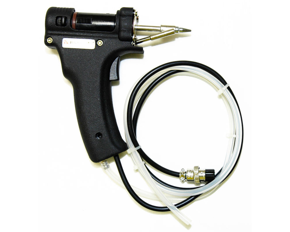 Ремонтная система с термовоздушным каналом и каналом для монтажа. Цифровой дисплей. Максимальная мощность станции - 760 Вт. Индикатор температуры нагрева. Температура нагрева паяльника 200…480 °C, термовоздушный канал 100…450 °С. Воздушный поток 24 л/мин. (макс), насос диафрагменного типа. Антистатическое исполнение. Габаритные размеры: 330х275х195..
