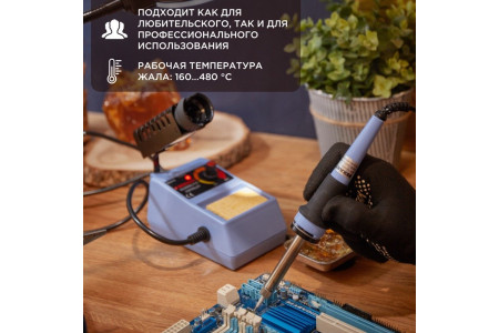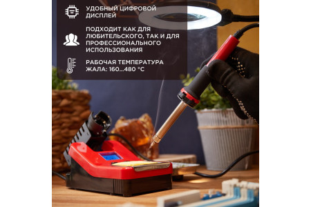 ОписаниеПаяльная станция REXANT предназначена для ручного монтажа радиоэлементов. Подходит как для любительского, так и для профессионального использования. Температура нагрева жала варьируется в диапазоне от 160-480°C и регулируется с помощью механического потенциометра. При необходимости жало можно заменить. Станция комплектуется паяльником, дер..