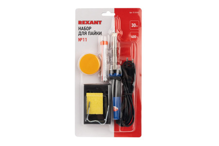 Набор для пайки №11 (паяльник 30Вт, подставка, губка для удаления припоя, канифоль, припой) (TL-1011) REXANT
