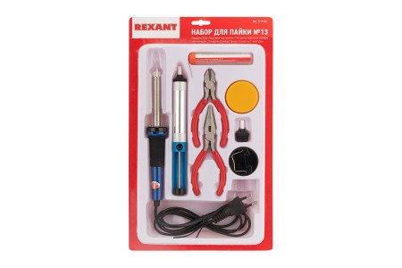 Набор для пайки №13 (паяльник 30Вт, подставка, канифоль, припой, бокорезы, тонкогубцы) (TL-1013) REXANT