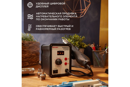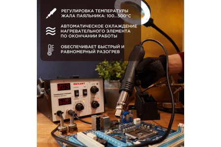 Паяльная станция (паяльник + фен), модель R852, компрессорная, 100-480°C REXANT