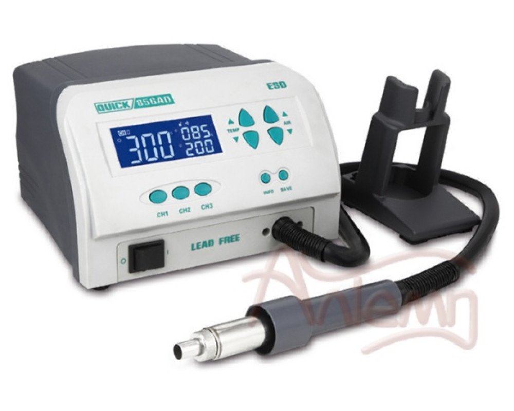 - Термовоздушная паяльная станция QUICK856AD ESD предназначена для пайки и демонтажа большинства компонентов поверхностного монтажа: SOIC, CHIP, QFP, PLCC, BGA и т.п.