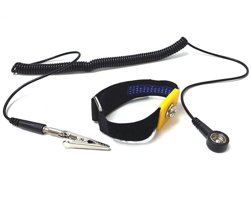 Антистатический эластичный браслет. Материал - проводящий эластичный нейлон. Заземляющий проводник - скрученный шнур со встроенным резистором 1 МОм для защиты. Контактный зажим «крокодил». Размер: 1,8 х 21 см. Цвет - Голубой. Максимальная длина провода заземления примерно - 1,5 м...