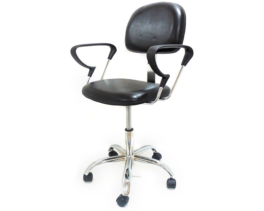 Кресло антистатического исполнения. Материал: вспененный полиуретан. Цвет: черный Высота: 460 - 610 мм. Хромированное 5-ти лучевое основание с 5 колесами. Размер сиденья: 420 х 400 мм. Размер спинки: 380 x 260 мм. Сопротивление: 10..
