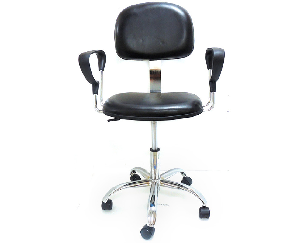 Кресло антистатического исполнения. Материал: вспененный полиуретан. Цвет: черный. Высота: 420 - 570 мм. Алюминиевое 5-ти лучевое основание с 5 колесами. Нерегулируемые подлокотники. Размер сиденья: 430 х 420 мм. Размер спинки: 360 x 220 мм. Сопротивление: 10..