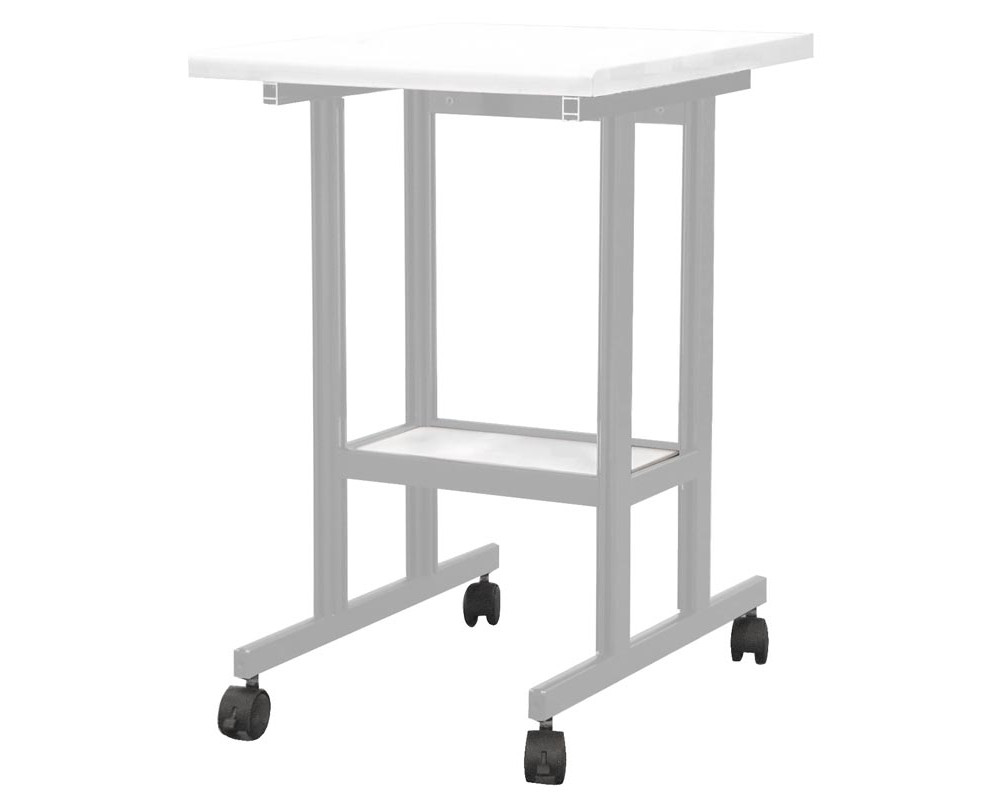 Стол подкатной 50х72х75 см. Столешница в ESD исполнении размером 72,3х50 см из антистатического меламинированного ДСП толщиной 25 мм. Цвет алюминиевого каркаса - серый (RAL-9006), цвет ДСП - белый. Четыре колеса, два из них блокируемые. Полка 40х24 см...