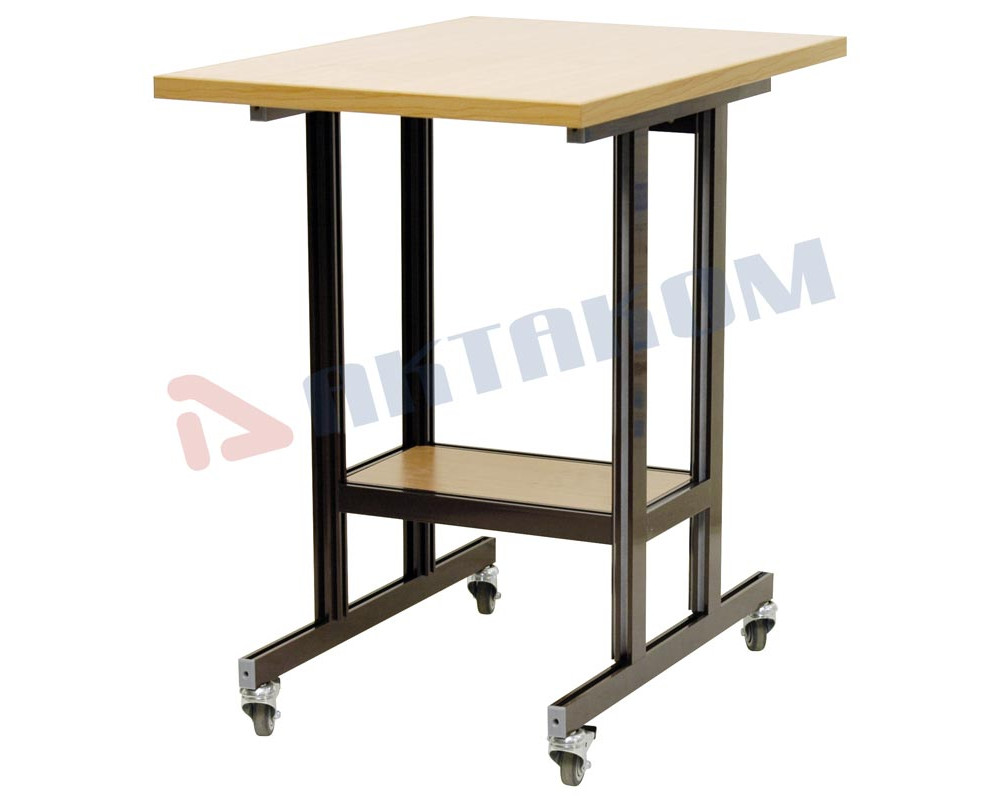 Стол подкатной 50х72х75 см. Цвет алюминиевого каркаса - коричневый (RAL-8017), цвет ДСП - белый. Четыре колеса, два из них блокируемые. Полка 40х40 см...