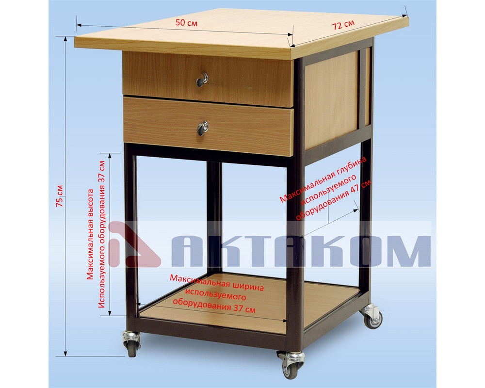 АРМ-5075 Стол подкатной с 2-мя ящиками с лицевыми панелями и замком