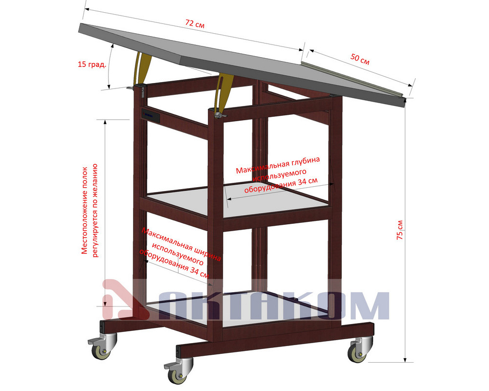 Подкатной столик с регулируемым наклоном рабочей поверхности с антистатической столешницей АРМ-5152-ESD
