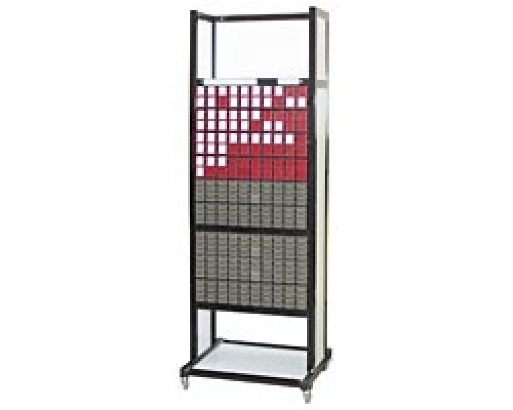 Стойка для хранения комплектующих элементов или инструмента.Цвет каркаса алюминиевого профиля - коричневый (RAL 8017), цвет ДСП - белый. 10 выдвижных ящиков (33 х 40 х 8 см). Габаритные размеры: (ш х г х в) 43 х 46 х 118 см...
