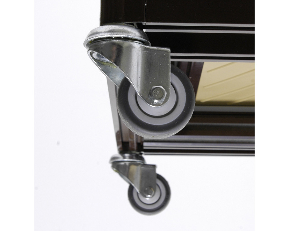 Тумбочка подкатная (шхгхв) 84х50х69 см. Цвет алюминиевого каркаса - коричневый (RAL-8017), цвет ДСП - белый. Четыре колеса на резиновом ходу без блокировки. Десять ящиков 33х40х8 см, с лицевыми панелями...