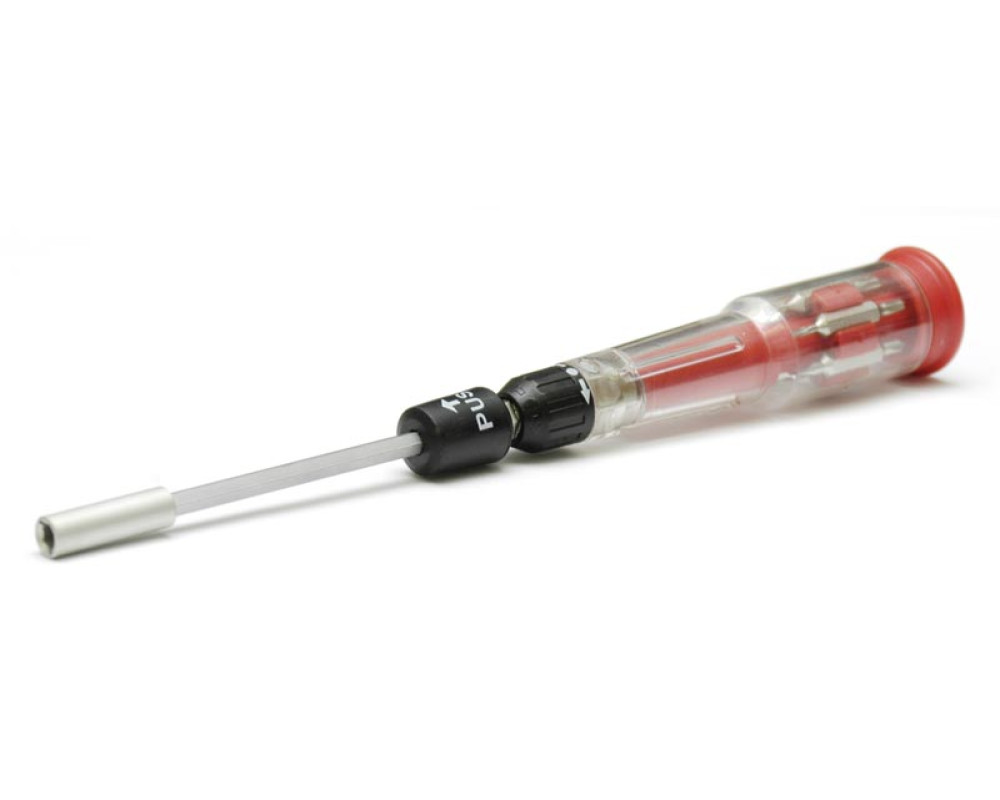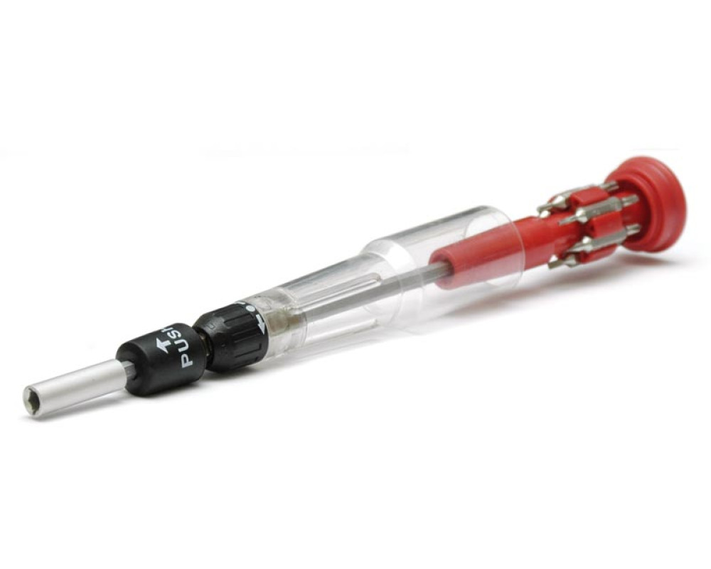 Набор прецизионных отверток 33 предмета: отвёртка с гибким 8" адаптером-удлиннителем под сменные насадки-битами (M2 - 4 мм): прямой шлиц (1,0; 1,5; 2,0; 2,5; 3,0; 3,5; 4,0); крестовые Phillips (PH000; PH00; PH0; PH1) и Pozidriv (PZ0; PZ1); шестигранник (H0,7; H0,9; H1,3; H1,5; H2,0; H2,5; H3,0; H4,0); звёзда Torx (T4; T5; T6; T7; T8; T9; T10; T15; ..