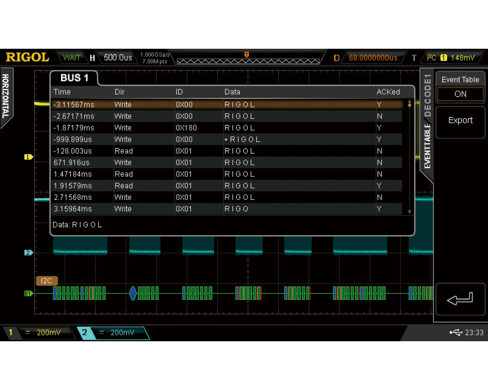 Опция анализа и запуска по шинам I²S. Подходит для осциллографов Rigol серии DS/MSO7000..