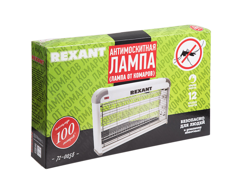 Антимоскитная лампа Rexant- современное экологически безопасное средство по борьбе с комарами, москитами, мошкой, мотыльками и другими летающими видами насекомых внутри помещения. Устройство излучает ультрафиолет и нагревается, тем самым имитирует млекопитающих животных и манит насекомых. Насекомые, подлетая, получают смертельный удар током от металлической сетки под напряжением.