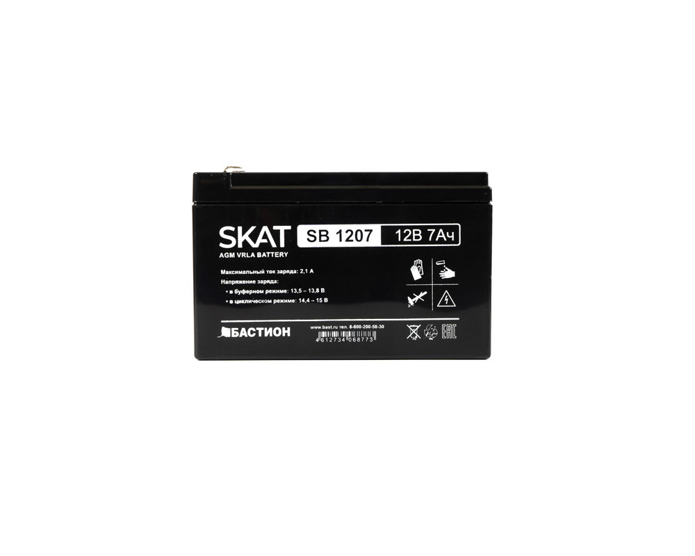 SKAT SB 1207 АКБ свинцово-кислотная тип AGM 12V 7Ач Iзар.2,1 А, ножевые клеммы