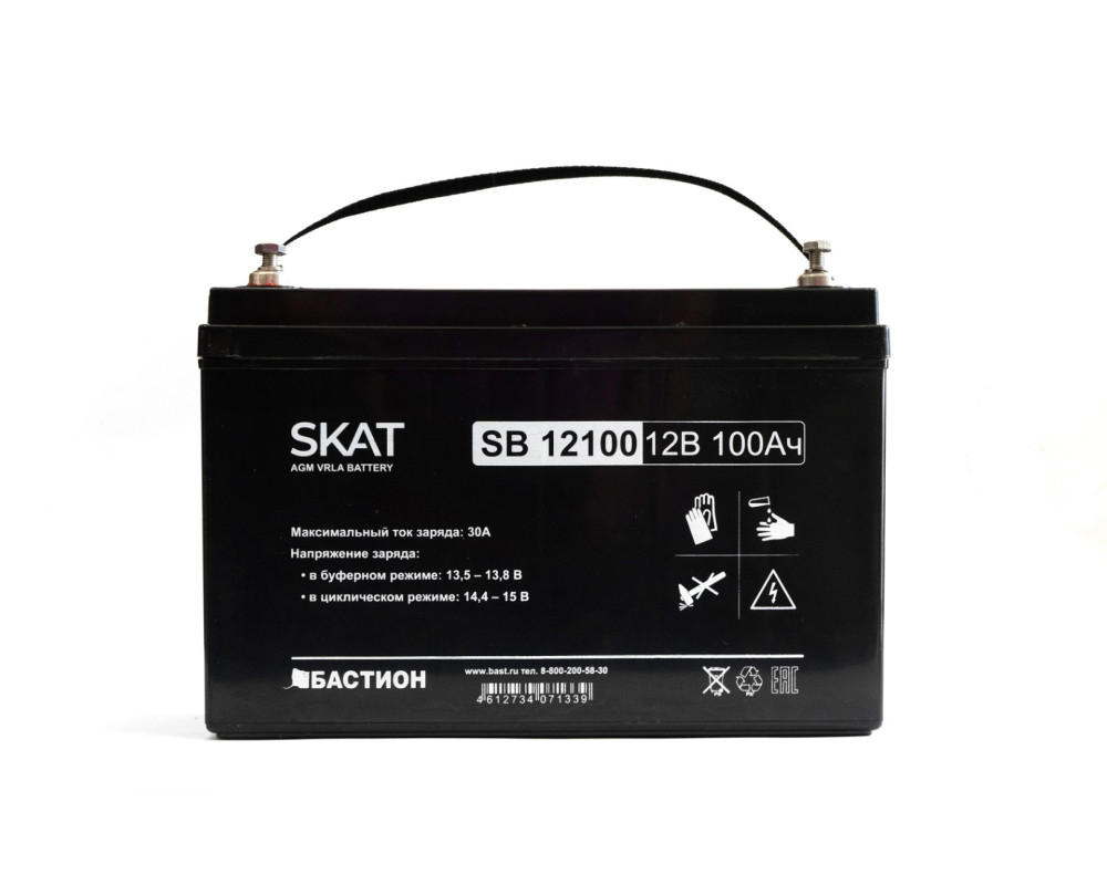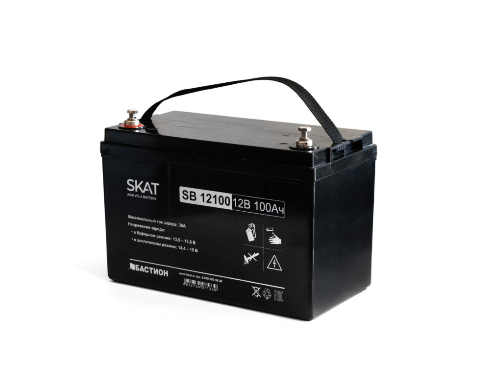 SKAT SB 12100 АКБ свинцово-кислотная тип AGM 12V 100Ач Iзар.30А, клеммы под болт М6