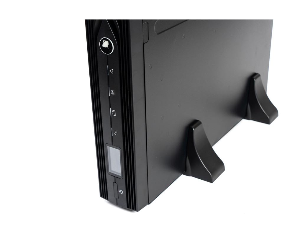 SKAT-UPS 1500 RACK: 220 В,1500ВА (1350 Вт), Online, синусоидальная форма выходного напряжения, световая и звуковая индикация режимов работы, необходимое количество АКБ для работы — 3 шт. ёмкостью 40–120 Ач. Ток заряда АКБ – 6 А. Дистанционный мониторинг по RS 232, USB, порт для платы релейного интерфейса. Возможность подключения SNMP-модуля DL 801..