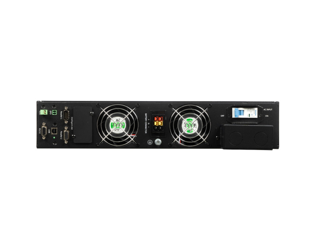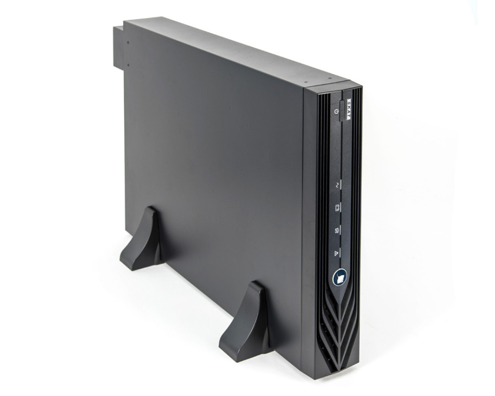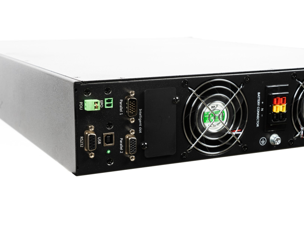 220 В, 10 кВА (9 кВт), Online, синусоидальная форма выходного напряжения, длительный резерв, световая и звуковая индикация режимов работы, ЖК-дисплей, необходимое кол-во АКБ для работы – 16 шт., горячая замена АКБ, холодный старт, ёмкость – 80 Ач. Ток заряда АКБ – 10 А, функция удалённого аварийного отключения выходного напряжения (EPO), стабилизация выходной частоты 50 Гц при входной 45-55 Гц. Дистанционный мониторинг по RS232, USB, порт для платы релейного интерфейса. Возможность подключения SNMP-модуля CX 504. Настольная установка и установка в 19" шкаф (высота 2U). Уникальный ИБП для длительного резерва всего объекта. Время автономной работы зависит только от ёмкости АКБ. Расширенная гарантия.