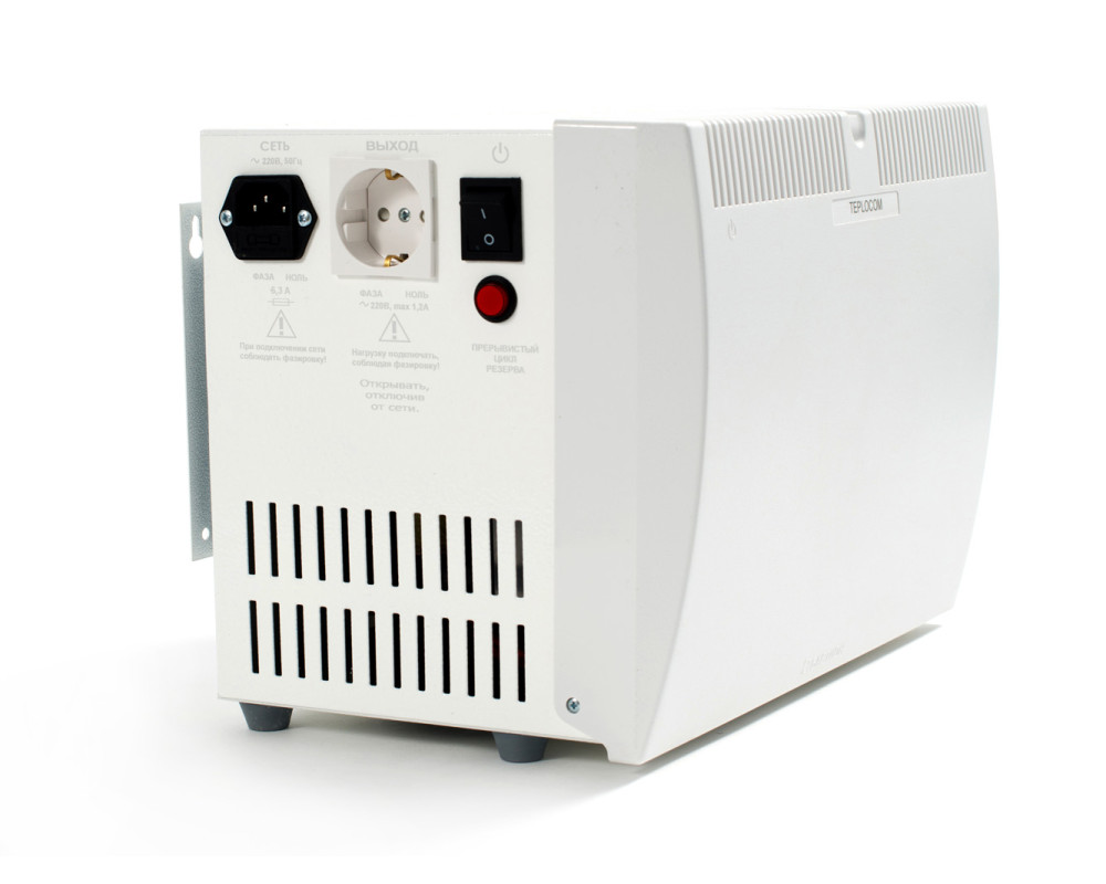 Источник бесперебойного питания для котла. 220 В, 250 ВА (200 Вт). Чистый синус. Автоматический переход на резервное питание от АКБ при пропадании сети. Металлопластиковый корпус рассчитан под установку АКБ до 40 Ач. Защита АКБ от глубокого разряда, оптимальный заряд АКБ, модуль зануления для корректной работы котла в режиме резерва, защита от перегрузки, индикация режимов работы, настенная или настольная установка. Режим продления времени резерва. Разработан с учётом специфики работы настенных газовых котлов. Застраховано «Ингосстрах» 3 000 000 руб. АКБ в состав комплекта не входит. Гарантия: пожизненная.