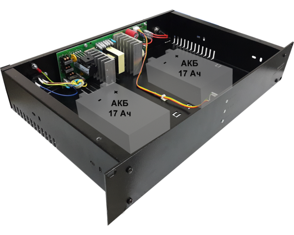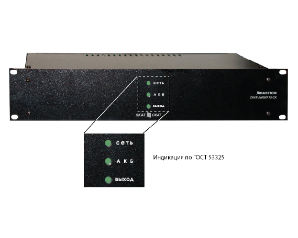 СКАТ-2400И7 RACK (СКАТ ИБП-24/4,5-2x17-RACK) источник питания 24В, 4А, высота 2U под 2 АКБ 7-17 Ач.