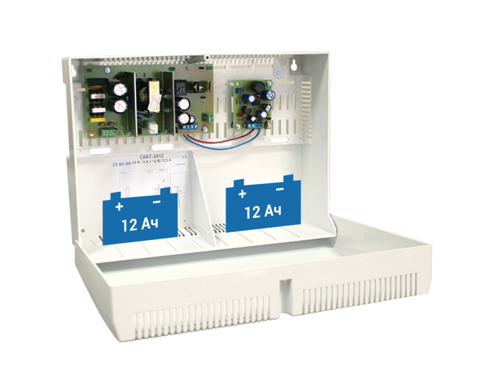 СКАТ-2412 (СКАТ ИБП-24/3(12/0,5)-2x12) источник питания 24В 3А/12В 0,5А корпус под АКБ 2х12Ач холод