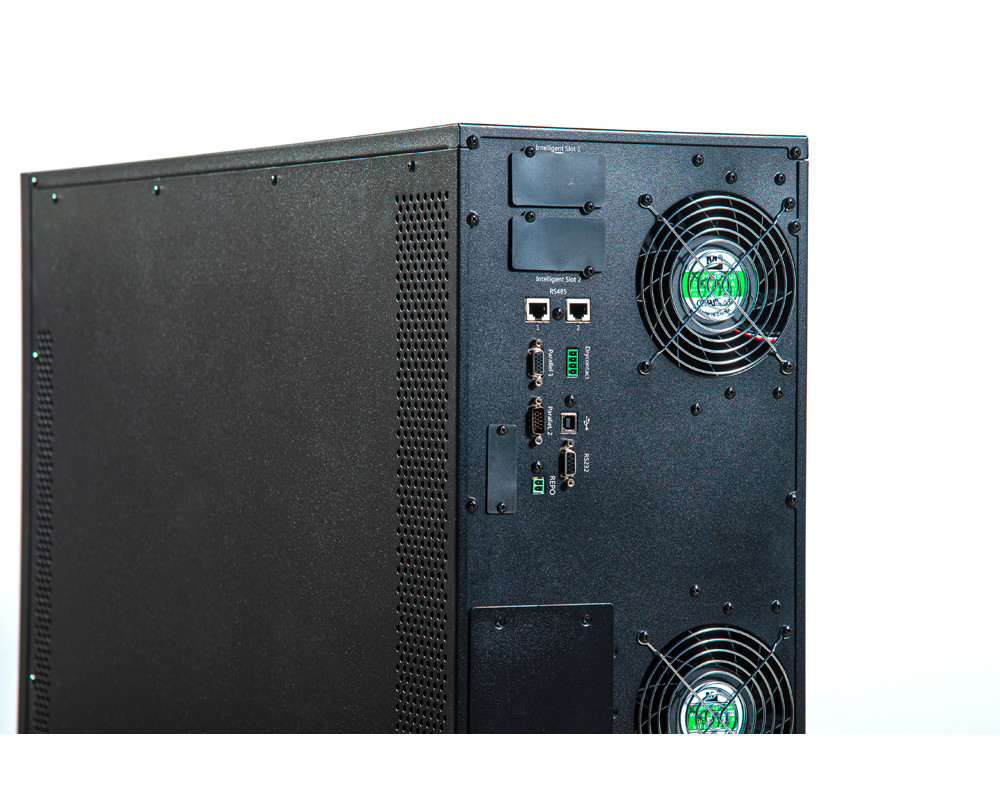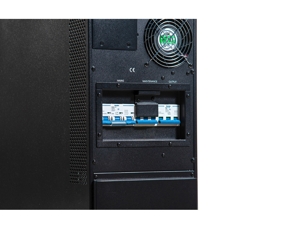 380 В, 40 кВА (36 кВт), Online, 3-фазный вход — 3-фазный выход, синусоидальная форма выходного напряжения, длительный резерв, световая и звуковая индикация режимов работы, ЖК-дисплей, необходимое кол-во АКБ для работы –32/34/36/38/40 шт., горячая замена АКБ, холодный старт, ёмкость — 40–250 Ач. Ток заряда АКБ — 10 А, стабилизация выходной частоты — 50 Гц при входной 45...55 Гц. Наращивание мощности или резервирование параллельным включением до 4 устройств. Дистанционный мониторинг по RS 232, USB, 2 порта для платы релейного интерфейса или SNMP-модуля CX 504, коммуникационный порт типа "сухой контакт". Функция удалённого аварийного отключения выходного напряжения (EPO). Напольная установка. Уникальный ИБП для длительного резерва всего объекта. Время автономной работы зависит только от ёмкости АКБ. Расширенная гарантия.