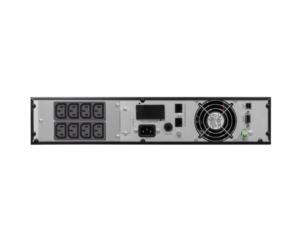 220 В, 1000 ВА (800 Вт), Online, синусоидальная форма выходного напряжения, световая и звуковая индикация режимов работы, ЖК-дисплей, необходимое количество АКБ для работы — 2 шт. (24 В). Минимальная требуемая ёмкость — 17 Ач. Ток заряда АКБ — 6 А. Дистанционный мониторинг по RS 232, USB, порт для платы релейного интерфейса, SNMP-адаптера и др. Фун..