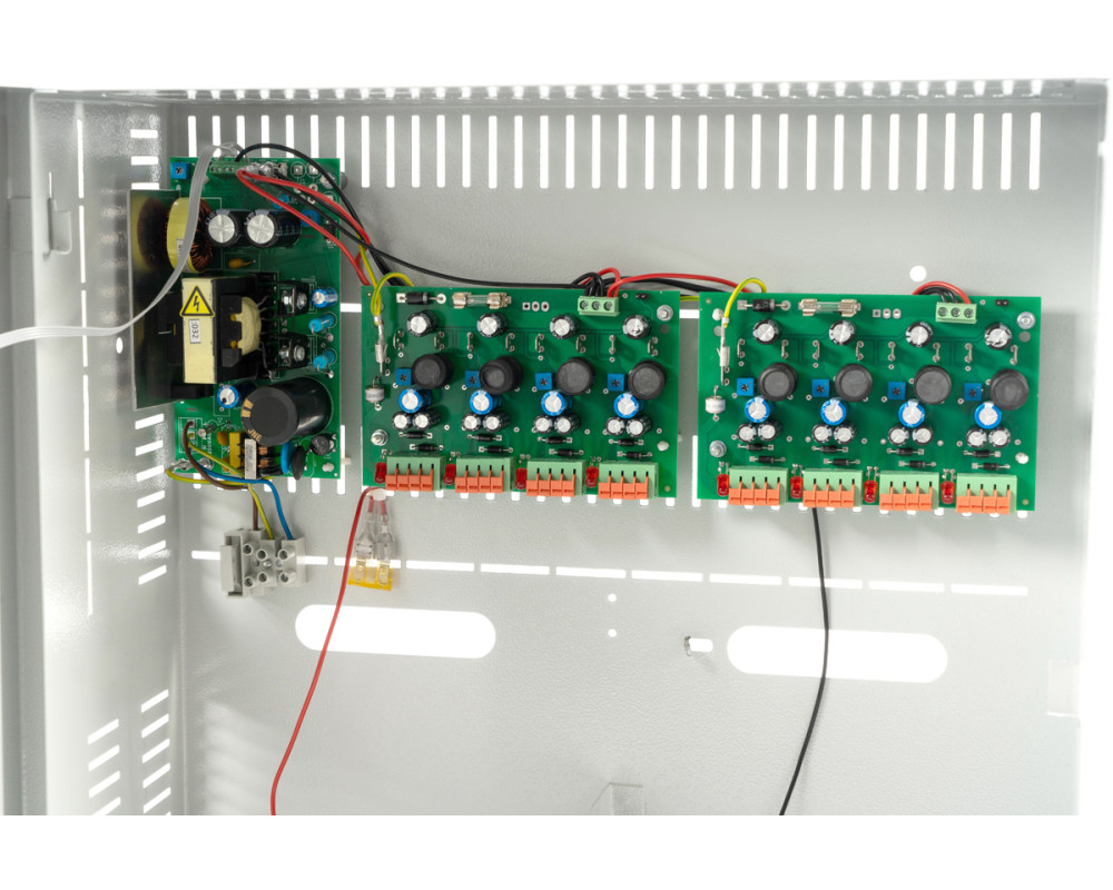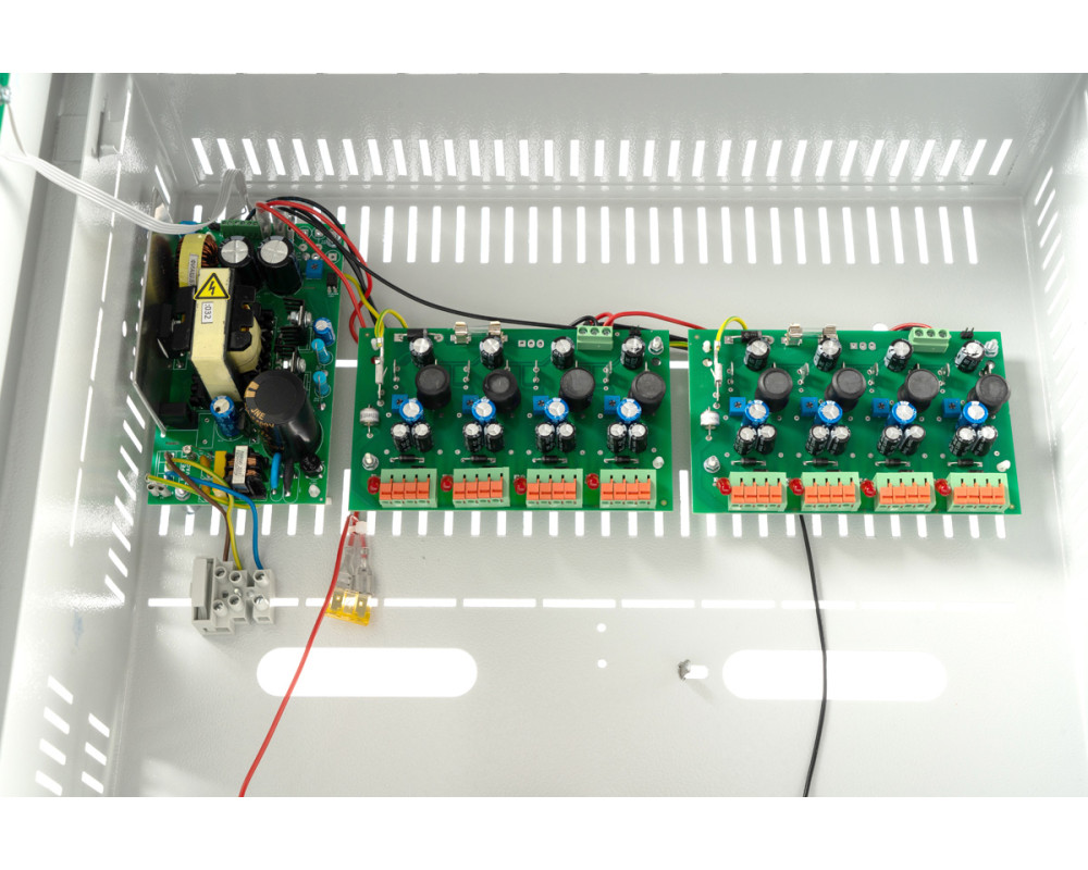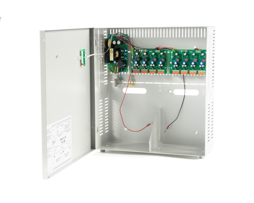 16 выходов по 0,5 А или 8 выходов по 1 А; Корпус под 2 АКБ 26 Ач; Максимальный ток по всем выходам — 6 А; Независимая регулировка выходного напряжения по каналам; Фильтрация помех по каждому каналу; Защита от КЗ и перегрузки по каждому каналу; Гарантия: пожизненная.
