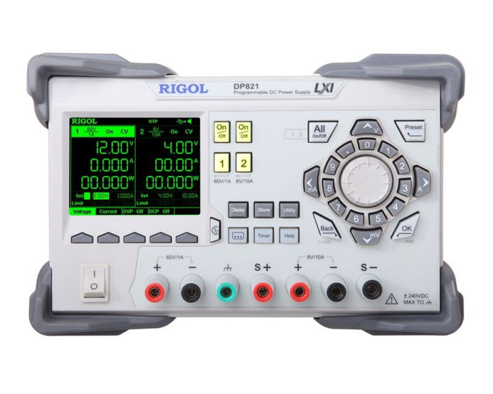 Программируемый источник питания RIGOL DP811A 1 канал (два режима работы 40 В/5 А, 20 В/10 А) Выходное регулируемое напряжение для режимов: 0~+20 В, 0~+40 В (разрешение дисплея 1 мВ) Выходной ток для режимов: 0~10 А, 0~5 А (разрешение дисплея 1 мА) Высокая стабильность и малые пульсации (≤ 350 мкВ скз, ≤2 мA скз) Малое влияние..