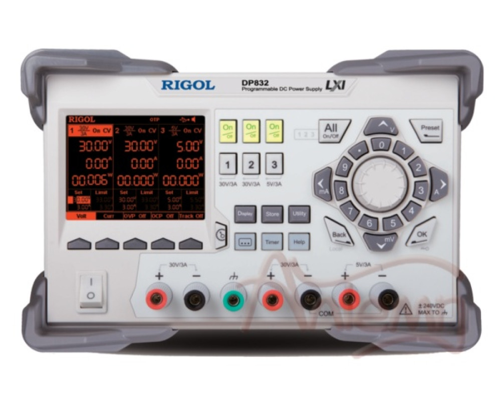 - Интерфейсы Rigol DP832: USB (host и device); RS232, LAN (LXI класс С, поддержка SCPI), цифровой 4-х канальный интерфейс, USB-GPIB - опционально