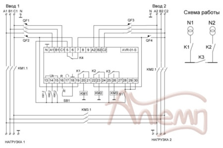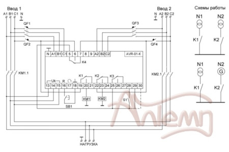Для работы в блоках АВР-2.0, 2.1, 2.2, 3.0 , 3.1, ЖКИ индикатор, управлеие контакторами и моторприводами, 6 модулей, монтаж на DIN-рейку..