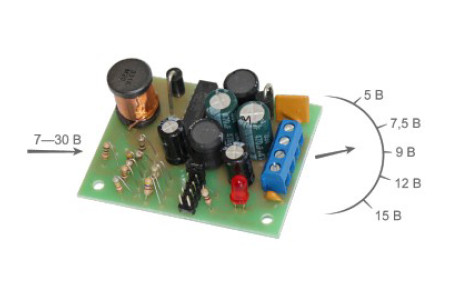 Универсальный преобразователь напряжения входного напряжения от 7 до 30 В в фиксированное выходное напряжение 5 | 7,5 | 9 | 12 | 15 В, максимальный ток — 1,5 А. Расширенная гарантия...