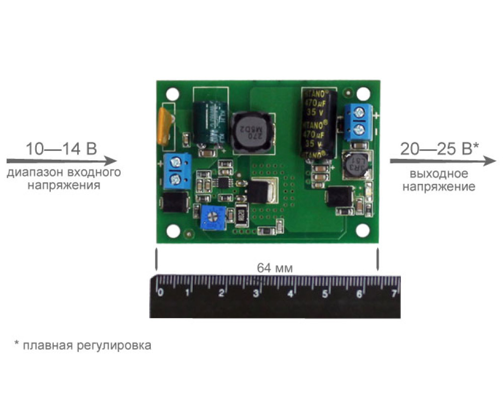 Преобразователь напряжения с входного 10...14 В в стабилизированное выходное напряжение 24 В, 1 А. Расширенная гарантия.
