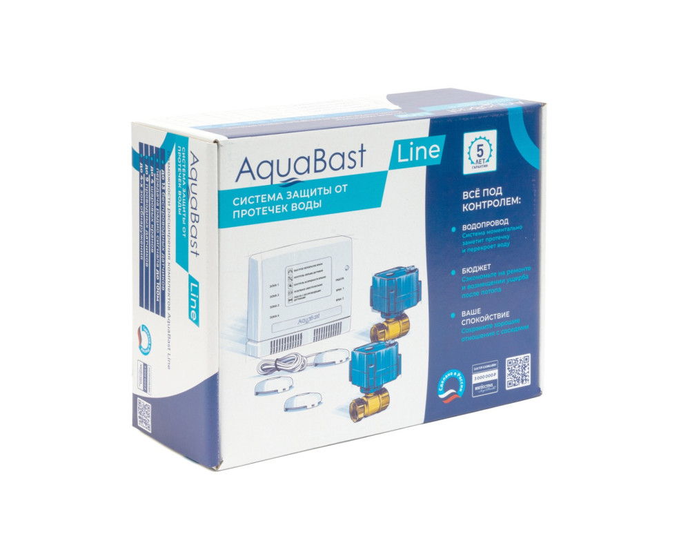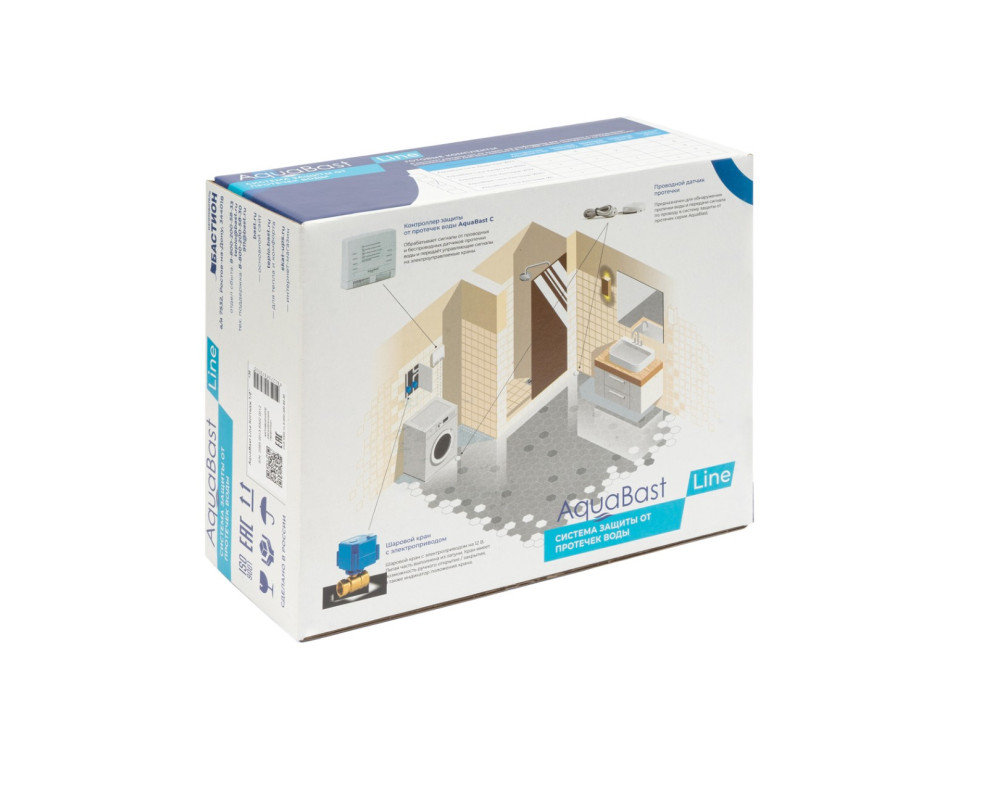 В комплект входит: контроллер защиты от протечек воды AquaBast C-RF. 2 шаровых крана с электроприводом, 12 В. 3/4 дюйма, корпус латунь литье, ручное открытие / закрытие, индикатор положения крана. 3 проводных датчика протечки, 1 блок питания на 5В. Система обеспечивает: контроль датчиков протечки и выдачу управляющих сигналов на перекрытие шаровых кранов в случае аварии (4 зоны контроля).Управление одной кнопкой, светодиодная индикация режимов работы и зон протечки энергосберегающий режим при работе от АКБ, звуковое и световое оповещение о протечке и авариях периферийных устройств. Гарантия: пожизненная.