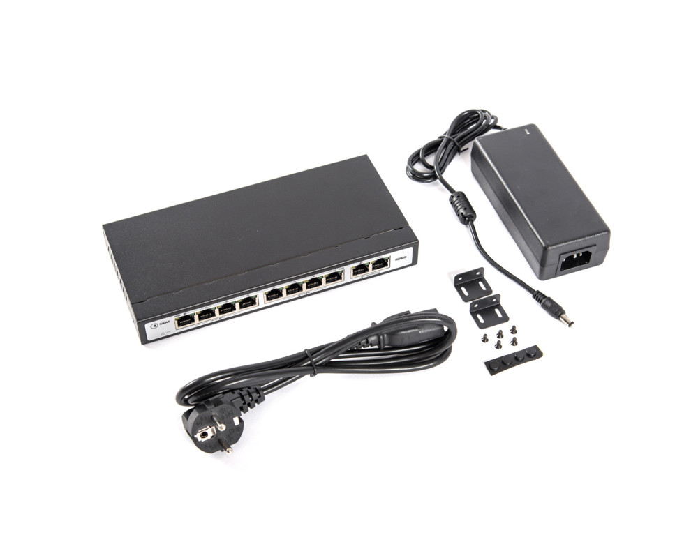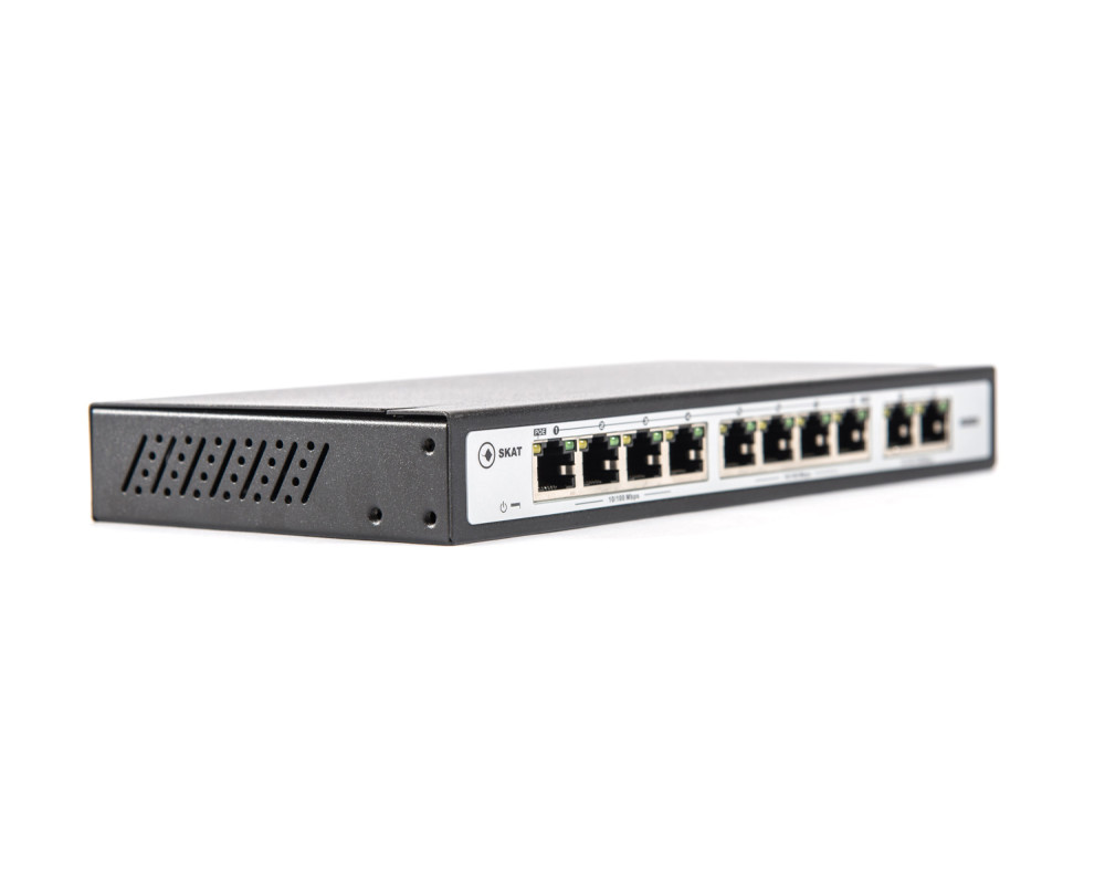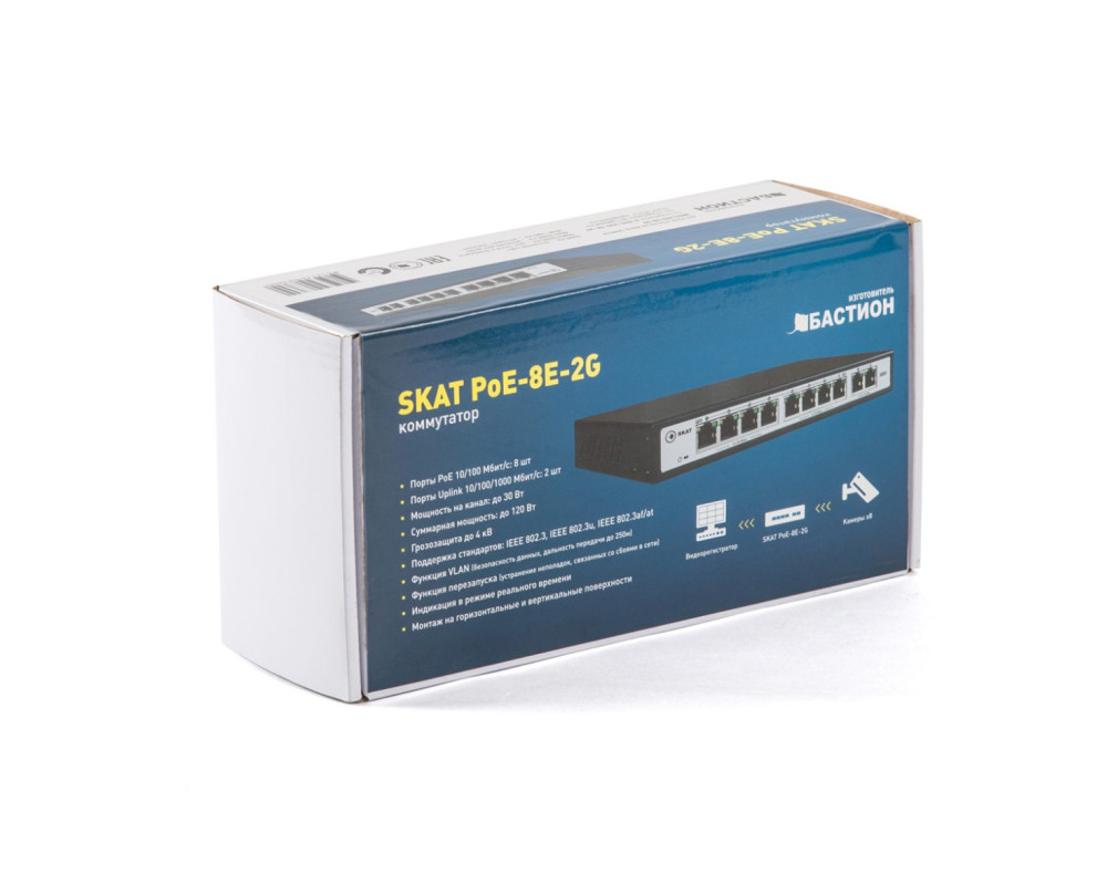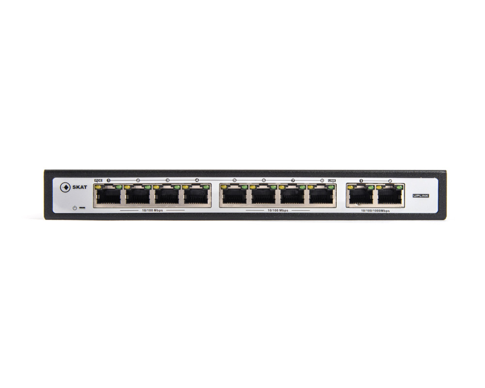 Специализированный неуправляемый PoE plus коммутатор. Поддержка питания по технологии PoE (питание по Ethernet кабелю стандарт IEEE 802.3af/at) по 8 портам. Коммутатор автоматически определяет тип питания подключённых устройств. Дополнительные 2 порта UPLINK RJ45 10/100/1000Mbps обеспечивают возможность подключения регистратора, роутера или дополнительных коммутаторов. Суммарная мощность потребителей составляет 120 Вт. Мощность на канал — до 30 Вт. Режим VLAN обеспечивает безопасность передачи данных и увеличение дальности передачи данных до 250 метров. Защита от грозовых разрядов — 4 кВ. Расширенная гарантия.
