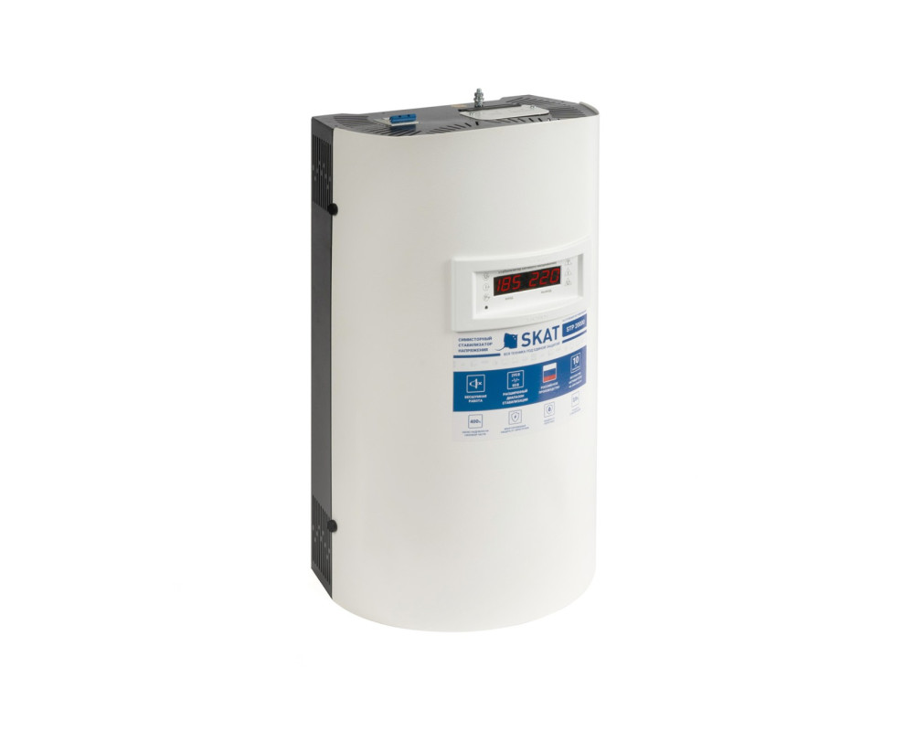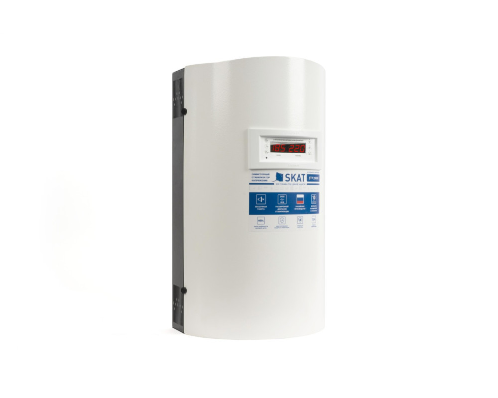 Бесшумный симисторный стабилизатор напряжения для всего дома. Мощность нагрузки — до 20 кВА. 9 ступеней регулирования. Точность стабилизации — 7%. Рабочий диапазон напряжения сети — 120...280 В. Расширенный диапазон напряжение сети — 80...295 В. 4 температурных датчика для защиты от перегрева. Тройная защита от перегрузки. Микропроцессорное управление и «мягкое» переключение ступеней. Стабилизация вольтдобавочного типа. Цифровой дисплей отображает реальное напряжение, ток, мощность по входу и выходу. Конвективное охлаждение без вентилятора. Защитное отключение при аварийно низком/высоком напряжении с автоматическим восстановлением. Напольная установка или настенная при помощи Кронштейнов.