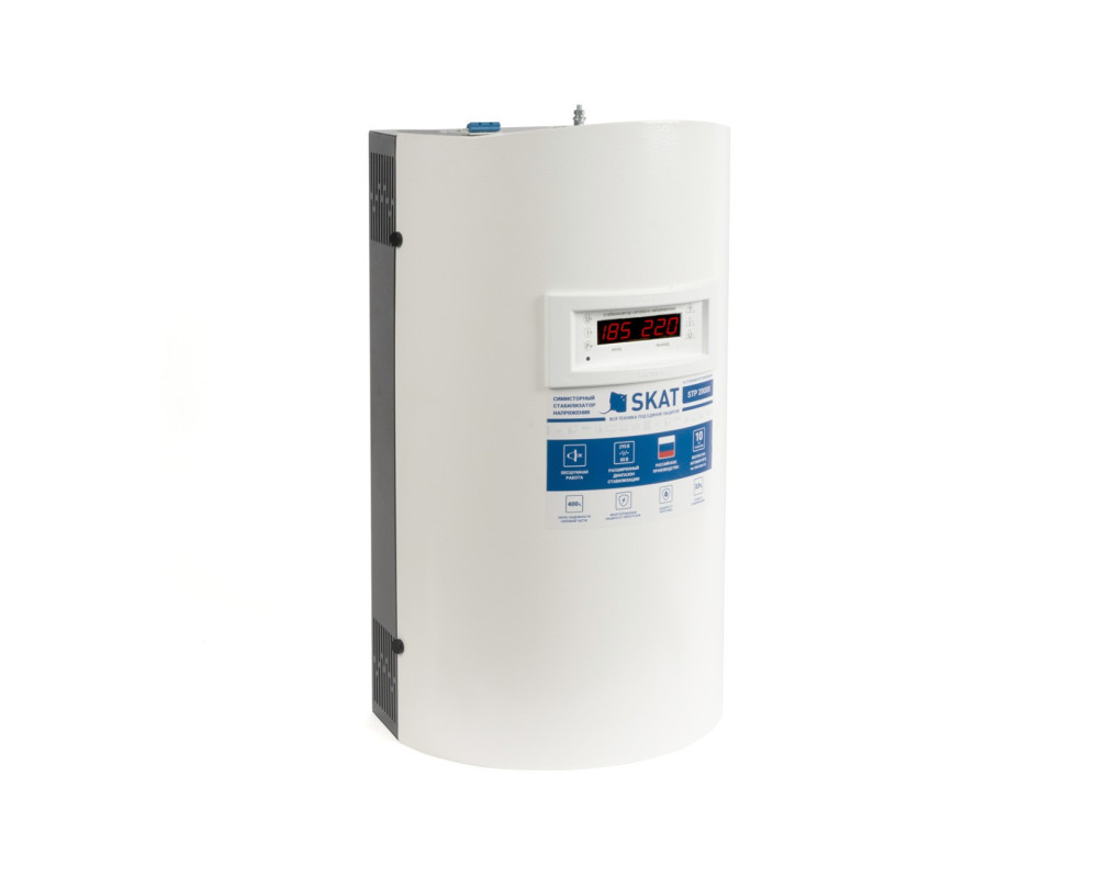 Бесшумный симисторный стабилизатор напряжения для всего дома. Мощность нагрузки — до 20 кВА. 16 ступеней регулирования. Точность стабилизации — 3,5%. Рабочий диапазон напряжения сети — 120...280 В. Расширенный диапазон напряжение сети — 80...295 В. 4 температурных датчика для защиты от перегрева. Тройная защита от перегрузки. Микропроцессорное управление и «мягкое» переключение ступеней. Стабилизация вольтдобавочного типа. Цифровой дисплей отображает реальное напряжение, ток, мощность по входу и выходу. Конвективное охлаждение без вентилятора. Защитное отключение при аварийно низком/высоком напряжении с автоматическим восстановлением. Напольная установка или настенная при помощи Кронштейнов.
