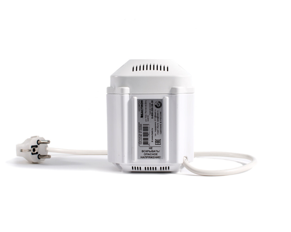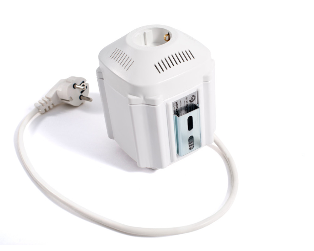 Релейный стабилизатор напряжения; Мощность нагрузки: 222 ВА; Диапазон входного напряжения: 145 - 260 В; 4 ступени регулирования; Точность стабилизации — 8%; Гарантия: пожизненная.