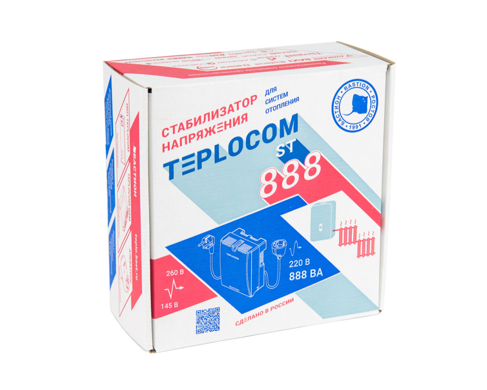 Релейный стабилизатор напряжения; Мощность нагрузки: 888 ВА; Диапазон входного напряжения: 145 - 260 В; 4 ступени регулирования; Точность стабилизации — 8%; Гарантия: пожизненная.