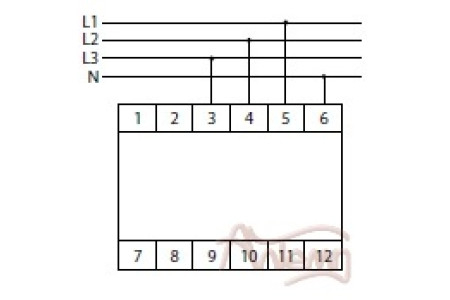 Трехфазный, 20-450В, фазное и линейное напряжения, цифровая индикация, 3 модуля, монтаж на DIN-рейку..