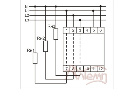 Сигнализация наличия трех фаз, наличие предохранителей (максимальный ток до 6,3 А), 1 модуль, монтаж на DIN-рейке..
