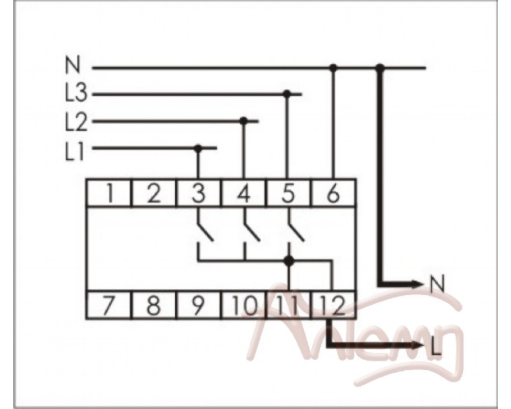 Регулируемое время задержки отключения по нижнему порогу напряжения: 1…15 с, с приоритетной фазой, 3 модуля, монтаж на DIN-рейку