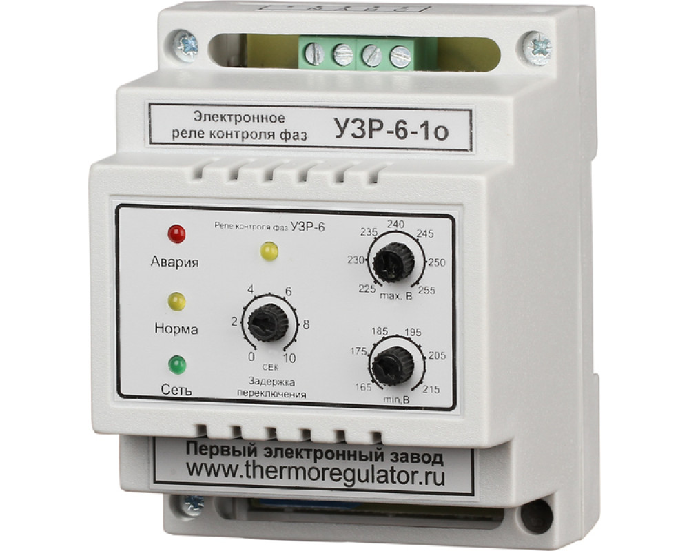 4 режима работы, контроль чередования, слипания фаз , контроль верхнего и нижнего значения напряжения, регулировка задержки отключения, 1 модуль, монтаж на DIN-рейке..