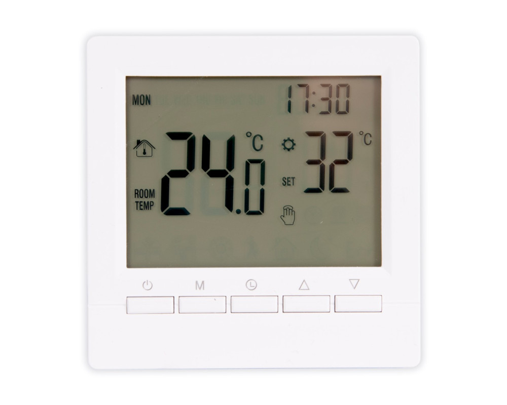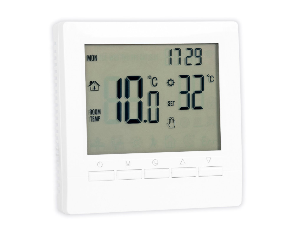 Двухканальный комнатный термостат для регулирования температуры в помещениях с комбинированными системами отопления (тёплый пол и радиаторы). Программирование расписания. Питание от сети — 220 В. Контакты реле — до 3 А. Температура регулировки — от 5 °С до 60 °С. Точность регулировки — 1 °С. Встраиваемый корпус в подрозетник. Большой LCD-дисплей. Индикация температуры в помещении. Температурный датчик в комплекте. Расширенная гарантия.